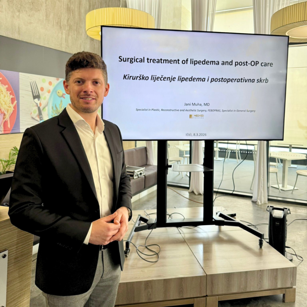 Naš kirurg dr. Jani Muha se je med 6. in 8. 3. 2026 na povabilo organizatorjev v Ičićih na Hrvaškem udeležil Mednarodnega simpozija z naslovom Multidisciplinarni pristup liječenju limfedema, lipedema i kroničnih rana. Na strokovnem srečanju so se zbrali številni priznani strokovnjaki iz Hrvaške in tujine, ki se ukvarjajo z diagnostiko, zdravljenjem in celostno obravnavo kroničnih bolezni limfnih in mehkih tkiv.
